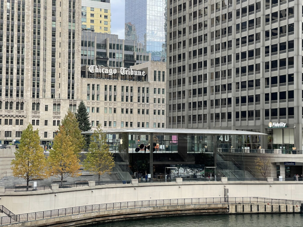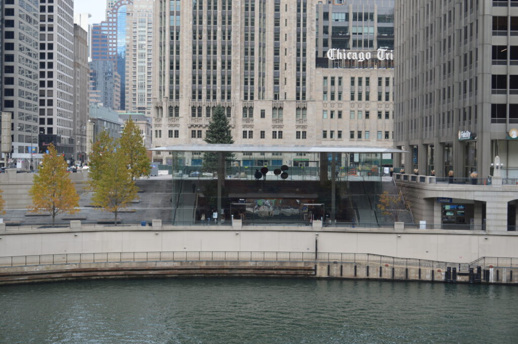 The main design focus of the Apple Store on Michigan Avenue in Chicago was to match the company’s look and feel of modern, artistic innovation. The building’s exterior walls are made of glass, giving it the appearance that the roof is floating. Carefully constructed to cascade down a public staircase, the Apple Store descends toward the Chicago River. The 22,000-square-foot retail space promotes creativity and gives customers a place to shop and take in a 360 view of the surrounding city.